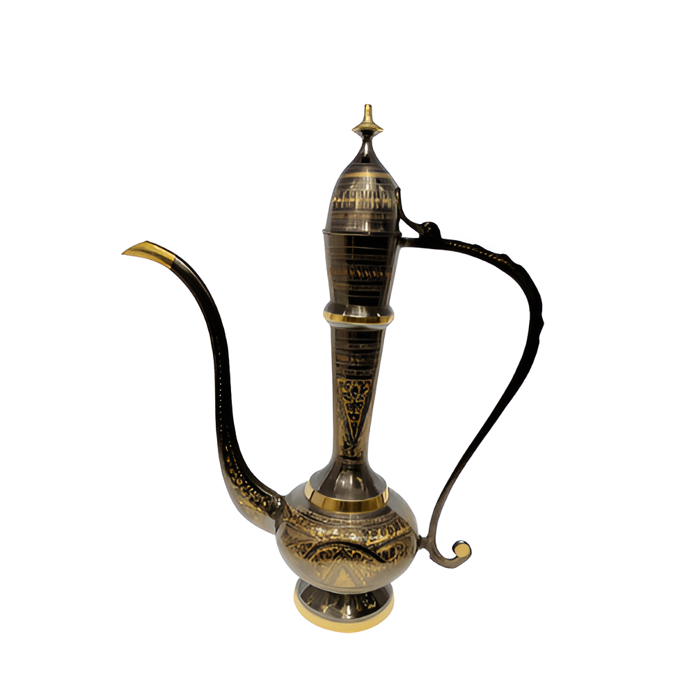 This Handcrafted Brass Decorative Dallah is an elegant representation of traditional craftsmanship. Featuring intricate engraved designs and vibrant enamel accents, this piece captures the beauty and heritage of the Middle East. The polished brass finish, combined with golden highlights, makes it a stunning decorative piece. Perfect for display in your living room, office, or as a cultural accent, this Dallah brings timeless elegance and charm to any space.